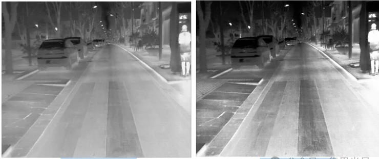 Histogram Equalization improves the visibility of low-contrast images and is widely used in infrared enhancement.